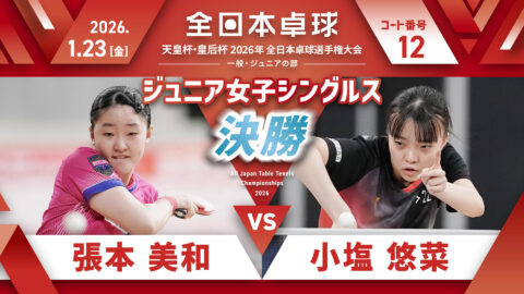 【見逃し配信】2026年全日本卓球選手権大会【4日目:1/23】:ジュニア女子決勝 張本美和 vs 小塩悠菜(コートNo. 12)