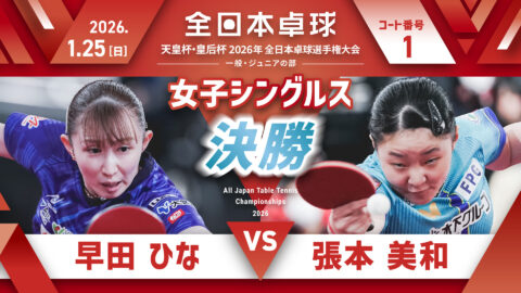 【見逃し配信】2025年全日本卓球選手権大会【6日目:1/26】:女子シングルス決勝 早田ひな vs 張本美和(コートNo.01)