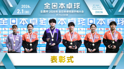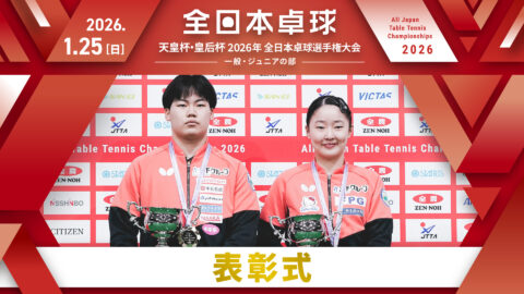 【見逃し配信】2026年全日本卓球選手権大会【6日目:1/25】:男女シングルス表彰式