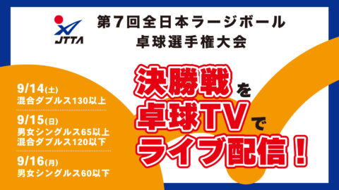 第7回全日本ラージボール卓球選手権大会:各種目決勝戦を卓球TVにてライブ配信