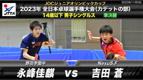 【14歳以下男子シングルス準決勝】永峰佳麒 vs 吉田 蒼|JOCジュニアオリンピックカップ 2023年全日本卓球選手権大会(カデットの部)