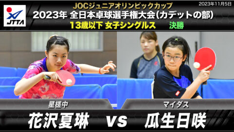 【13歳以下女子シングルス決勝】花沢夏琳 vs 瓜生日咲|JOCジュニアオリンピックカップ 2023年全日本卓球選手権大会(カデットの部)