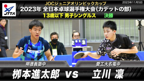 【13歳以下男子シングルス決勝】栁本進太郎 vs 立川 凜|JOCジュニアオリンピックカップ 2023年全日本卓球選手権大会(カデットの部)