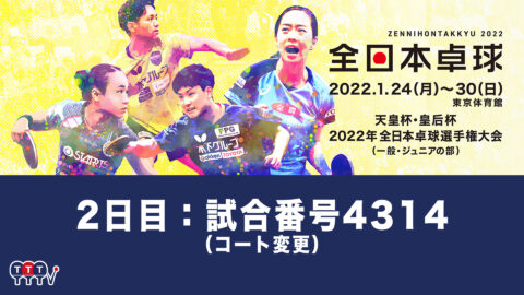 2022年全日本卓球選手権大会【3日目:1/26】:コートNo. 14<見逃し配信>