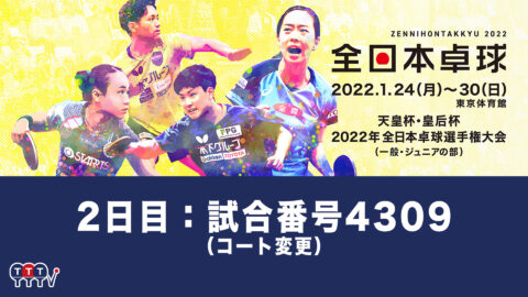 2022年全日本卓球選手権大会【3日目:1/26】:コートNo. 09<見逃し配信>