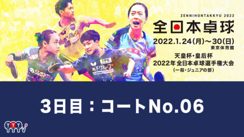 2022年全日本卓球選手権大会【3日目:1/26】:コートNo. 06<見逃し配信>