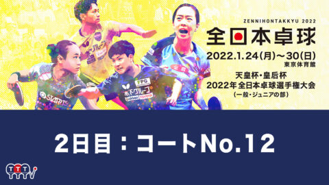 2022年全日本卓球選手権大会【2日目:1/25】:コートNo. 12<見逃し配信>