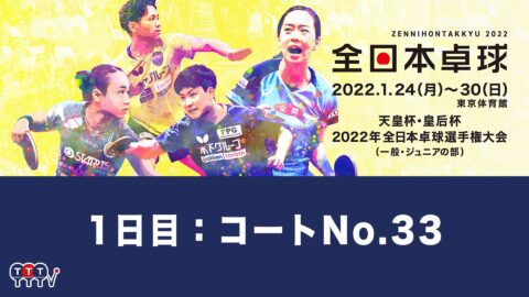 2022年全日本卓球選手権大会【1日目:1/24】:コートNo. 33<見逃し配信>