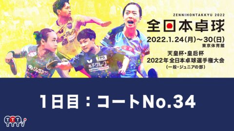 2022年全日本卓球選手権大会【1日目:1/24】:コートNo. 34<見逃し配信>