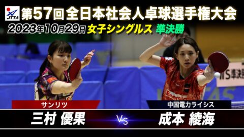 【女子シングルス準決勝】三村優果 vs 成本綾海|第57回全日本社会人卓球選手権大会