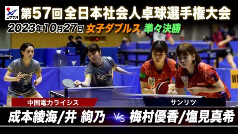 【女子ダブルス準々決勝】成本綾海/井 絢乃 vs 梅村優香/塩見真希|第57回全日本社会人卓球選手権大会