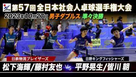 【男子ダブルス準々決勝】松下海輝/藤村友也 vs 平野晃生/皆川 朝|第57回全日本社会人卓球選手権大会