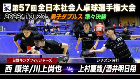 【男子ダブルス準々決勝】西 康洋/川上尚也 vs 上村慶哉/酒井明日翔|第57回全日本社会人卓球選手権大会