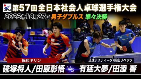 【男子ダブルス準々決勝】硴塚将人/田原彰悟 vs 有延大夢/田添 響|第57回全日本社会人卓球選手権大会