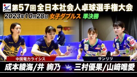 【女子ダブルス準決勝】成本綾海/井 絢乃 vs 三村優果/山﨑唯愛|第57回全日本社会人卓球選手権大会