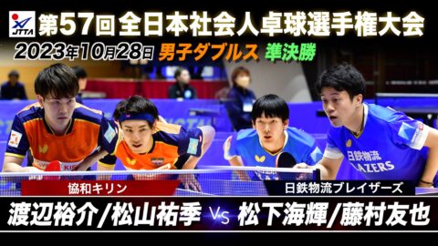 【男子ダブルス準決勝】渡辺裕介/松山祐季 vs 松下海輝/藤村友也|第57回全日本社会人卓球選手権大会