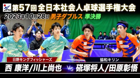 【男子ダブルス準決勝】西 康洋/川上尚也 vs 硴塚将人/田原彰悟|第57回全日本社会人卓球選手権大会