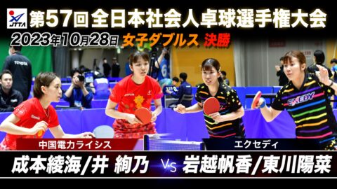 【女子ダブルス決勝】成本綾海/井 絢乃 vs 岩越帆香/東川陽菜|第57回全日本社会人卓球選手権大会