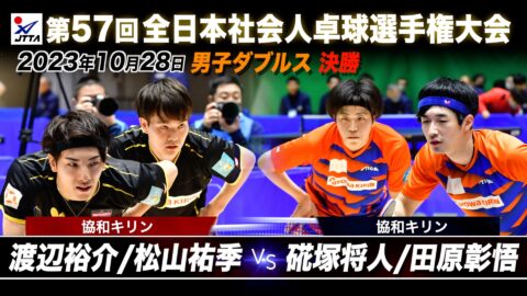 【男子ダブルス決勝】渡辺裕介/松山祐季 vs 硴塚将人/田原彰悟|第57回全日本社会人卓球選手権大会