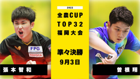 【男子 準々決勝】張本智和 vs 曽根翔|2022年全農CUP 福岡大会