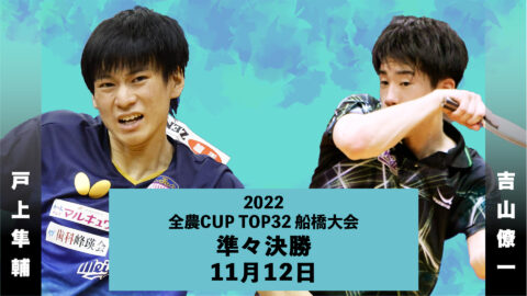 【男子 準々決勝】戸上隼輔 vs 吉山僚一|2022年全農CUP 船橋大会