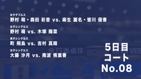 2022年全日本卓球選手権大会【5日目:1/28】:コートNo. 08<見逃し配信>