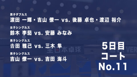2022年全日本卓球選手権大会【5日目:1/28】:コートNo. 11<見逃し配信>