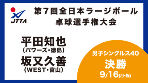 男子シングルス40決勝:平田知也 vs. 坂又久善|第7回全日本ラージボール卓球選手権大会