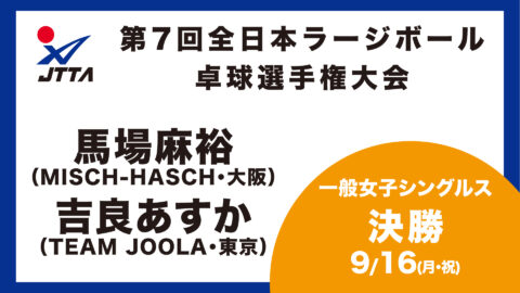 一般女子シングルス決勝:馬場麻裕 vs. 吉良あすか|第7回全日本ラージボール卓球選手権大会