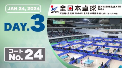 【見逃し配信】2024年全日本卓球選手権大会【3日目:1/24】:コートNo. 24
