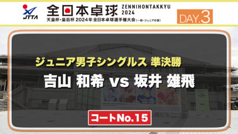 【見逃し配信】2024年全日本卓球選手権大会【3日目:1/24】:ジュニア男子準決勝 吉山 和希 vs 坂井 雄飛(コートNo.15)
