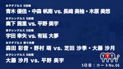 【見逃し配信】2023年全日本卓球選手権大会【5日目:1/27】:コートNo. 06 女子ダブルス|男女シングルス