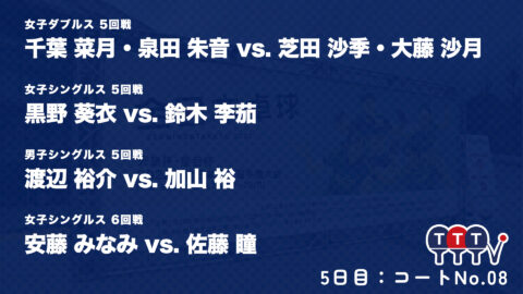 【見逃し配信】2023年全日本卓球選手権大会【5日目:1/27】:コートNo. 08 女子ダブルス|男女シングルス