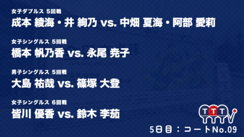【見逃し配信】2023年全日本卓球選手権大会【5日目:1/27】:コートNo. 09 女子ダブルス|男女シングルス