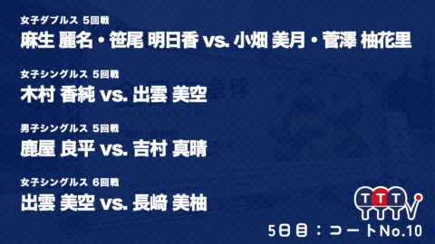 【見逃し配信】2023年全日本卓球選手権大会【5日目:1/27】:コートNo. 10 女子ダブルス|男女シングルス