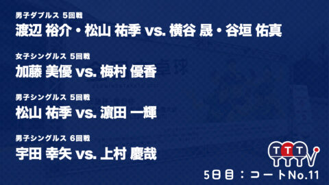 【見逃し配信】2023年全日本卓球選手権大会【5日目:1/27】:コートNo. 11 男子ダブルス|男女シングルス