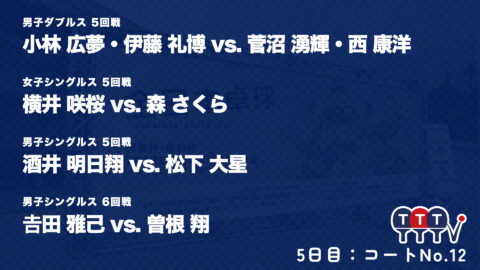 【見逃し配信】2023年全日本卓球選手権大会【5日目:1/27】:コートNo. 12 男子ダブルス|男女シングルス