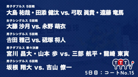 【見逃し配信】2023年全日本卓球選手権大会【5日目:1/27】:コートNo. 15 男子ダブルス|男女シングルス