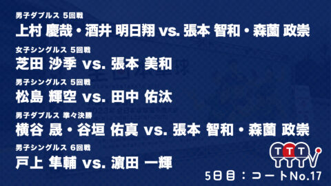 【見逃し配信】2023年全日本卓球選手権大会【5日目:1/27】:コートNo. 17 男子ダブルス|男女シングルス