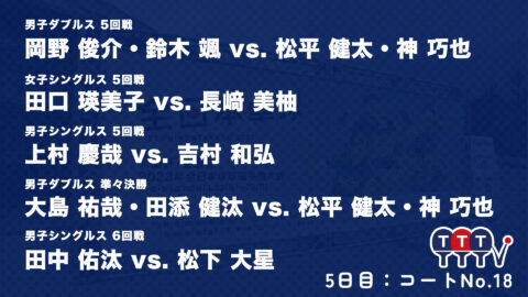 【見逃し配信】2023年全日本卓球選手権大会【5日目:1/27】:コートNo. 18 男子ダブルス|男女シングルス