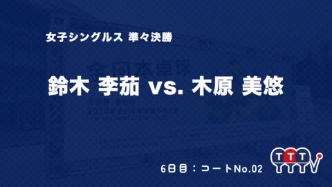 【見逃し配信】2023年全日本卓球選手権大会【6日目:1/28】:女子シングルス準々決勝 鈴木 李茄 vs. 木原 美悠(コートNo.02)