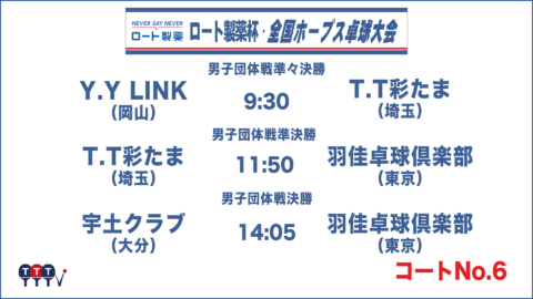 【見逃し配信】ロート製薬杯 第40回全国ホープス卓球大会:男子団体戦準々決勝&準決勝&決勝(コートNo.06)