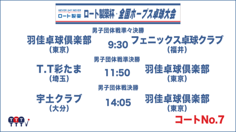 【見逃し配信】ロート製薬杯 第40回全国ホープス卓球大会:男子団体戦準々決勝&準決勝&決勝(コートNo.07)