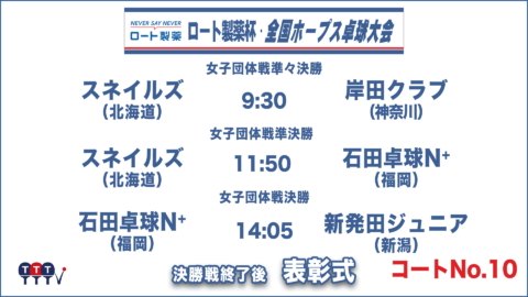 【見逃し配信】ロート製薬杯 第40回全国ホープス卓球大会:女子団体戦準々決勝&準決勝&決勝|表彰式(コートNo.10)