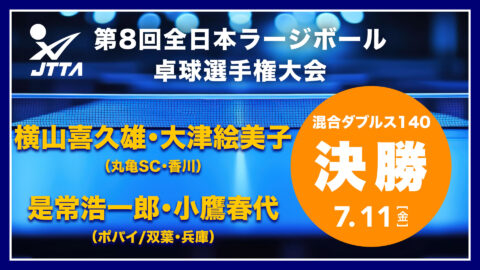 混合ダブルス140決勝:横山喜久雄・大津絵美子 vs. 是常浩一郎・小鷹春代|第8回全日本ラージボール卓球選手権大会