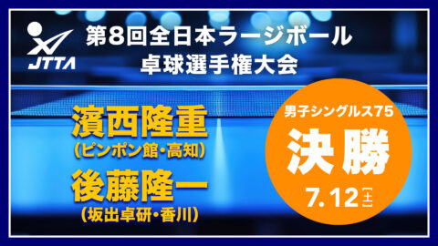 男子シングルス75決勝:濱西隆重 vs. 後藤隆一|第8回全日本ラージボール卓球選手権大会
