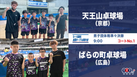 【見逃し配信】ロート製薬杯 第41回全国ホープス卓球大会:男子団体戦準々決勝(コートNo.01)<2023年8月13日(日)>