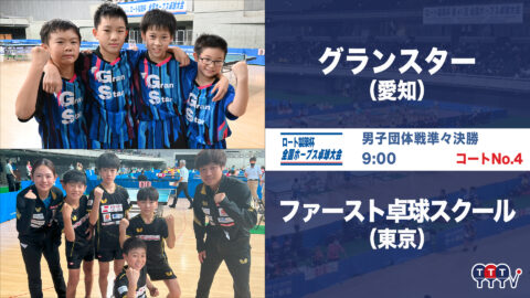 【見逃し配信】ロート製薬杯 第41回全国ホープス卓球大会:男子団体戦準々決勝(コートNo.04)<2023年8月13日(日)>