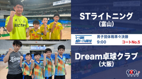 【見逃し配信】ロート製薬杯 第41回全国ホープス卓球大会:男子団体戦準々決勝(コートNo.05)<2023年8月13日(日)>