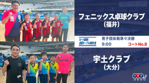 【見逃し配信】ロート製薬杯 第41回全国ホープス卓球大会:男子団体戦準々決勝(コートNo.08)<2023年8月13日(日)>